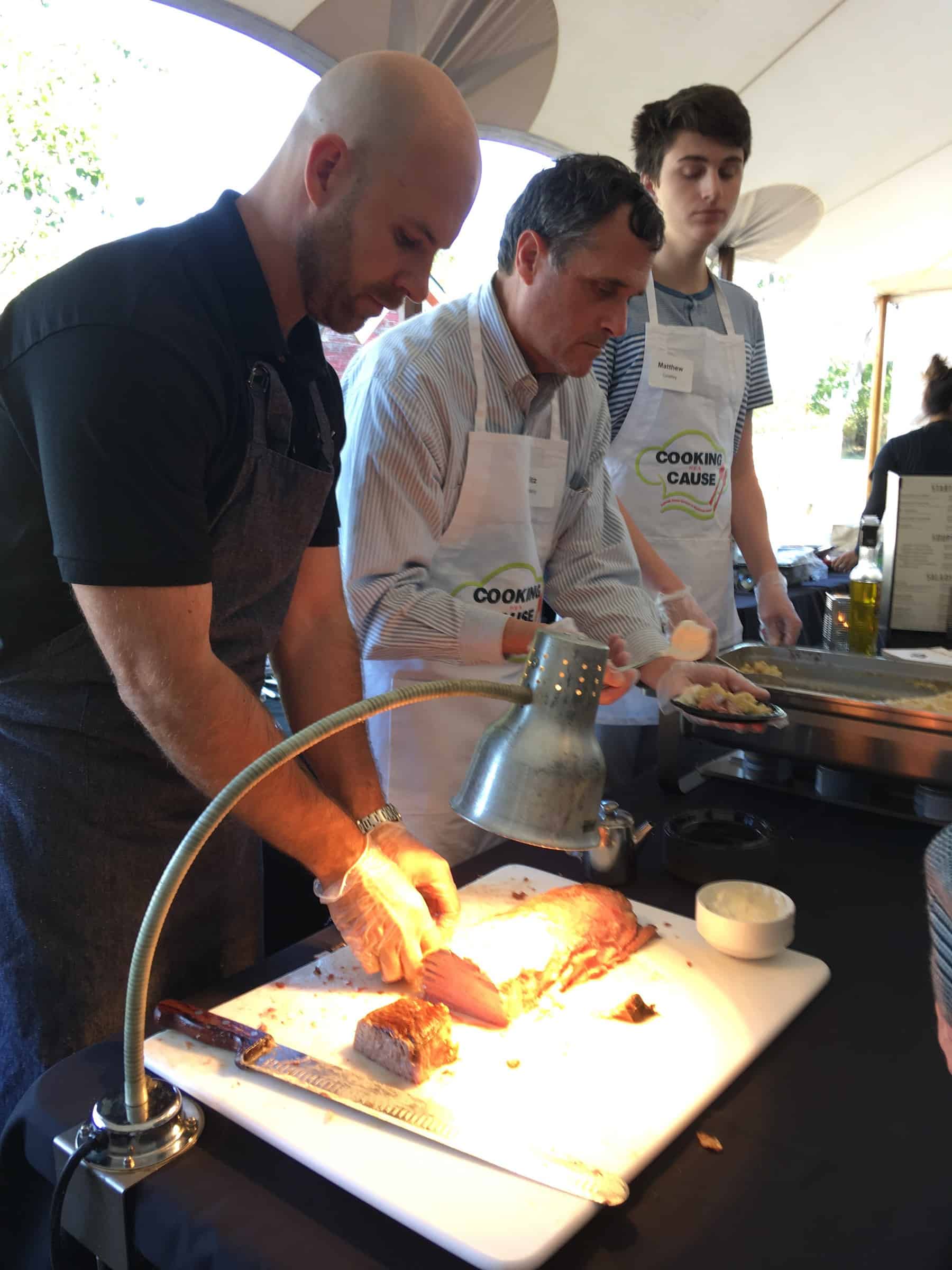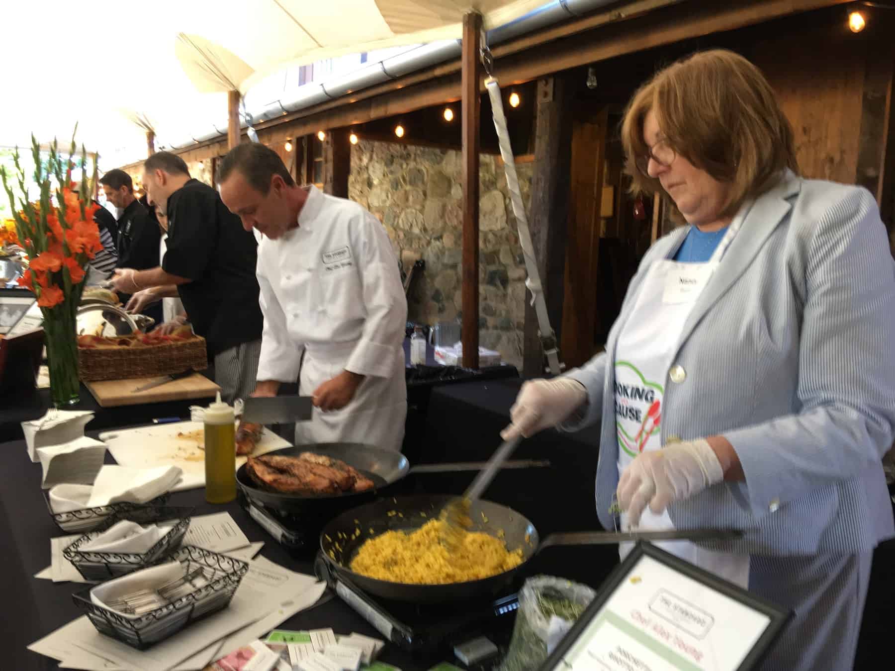 And our guests were well rewarded with absolutely incredible food! Choosing between Zingerman’s Roadhouse Limeade Swordfish, The Standard Bistro and Larder’s Porchetta and Risotto Milanese, Barton Hills’s Seared Scallops with Autumn Risotto, Katherine’s Catering’s Cider Braised Pork with Coconut Rice, The Moveable Feast’s Salmon and Maine Blue Crab Napoleon, Saline High School Culinary Arts Program’s Prime Rib Sliders, Silvio’s Organic Ristorante e Pizzeria’s Pasta Norma, and Weber’s Prime Rib Au Jus with Horseradish Sauce, was no easy task. But somebody had to do it, and our guests rose to the task…